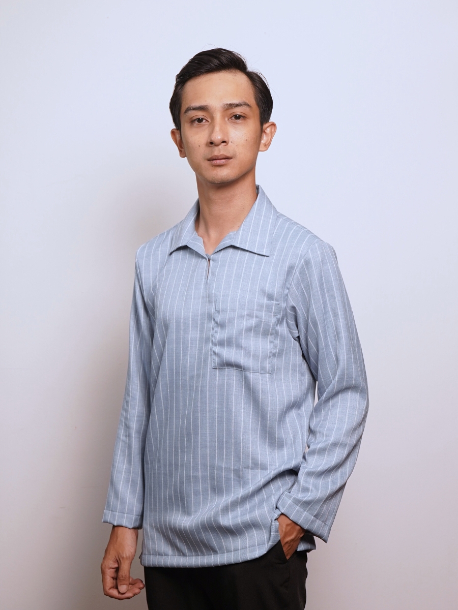 Made from breathable cotton linen, this piece combines structure and comfort in one effortless silhouette. The vertical stripe pattern adds a refined visual flow — subtle, clean, and modern without being loud.